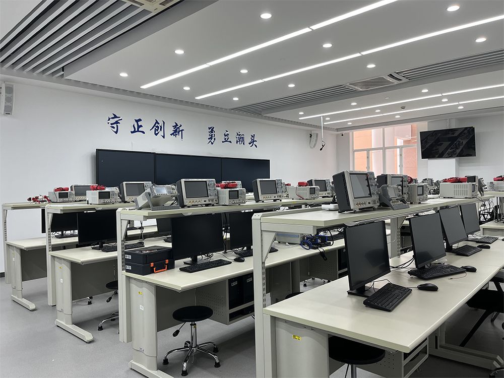 通信网络技术实训室配备信号源、示波器、5G移动通信实验设备、高频电子线路实验设备、高端综测仪、数据通信虚拟仿真软件等,可开展通信产品开发测试实践、5G移动网络建设实践、数据通信网络建设实践,支撑国产芯片创新实践、通信电子线路、计算机网络、移动通信、园区数据网组建及产品设计等课程。