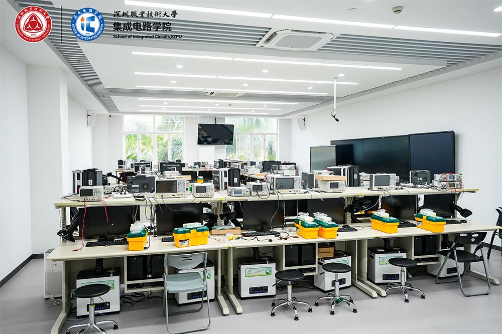 电子电路技术实训室配备信号发生器、数字示波器、可编程数控电源、数字万用表、电子电路实验实训平台、烟雾净化器等仪器设备,可开展戴维南定律、叠加定律、交直流电路分析、晶体管器件特性、集成运算放大器、基本组合逻辑电路、时序逻辑电路、计数器等电子技术基础实验,以及简易电子琴制作、太阳源调速小风扇制作、音频有源滤波器设计、函数发生器电路设计、功率放大器电路设计、TTL和CMOS逻辑门电路参数测试、加法及数据显示器设计、简易数字电压表设计等实践任务;支撑电路分析、模拟电子技术、数字电路与逻辑设计、国产芯片创新实践等课程教学。