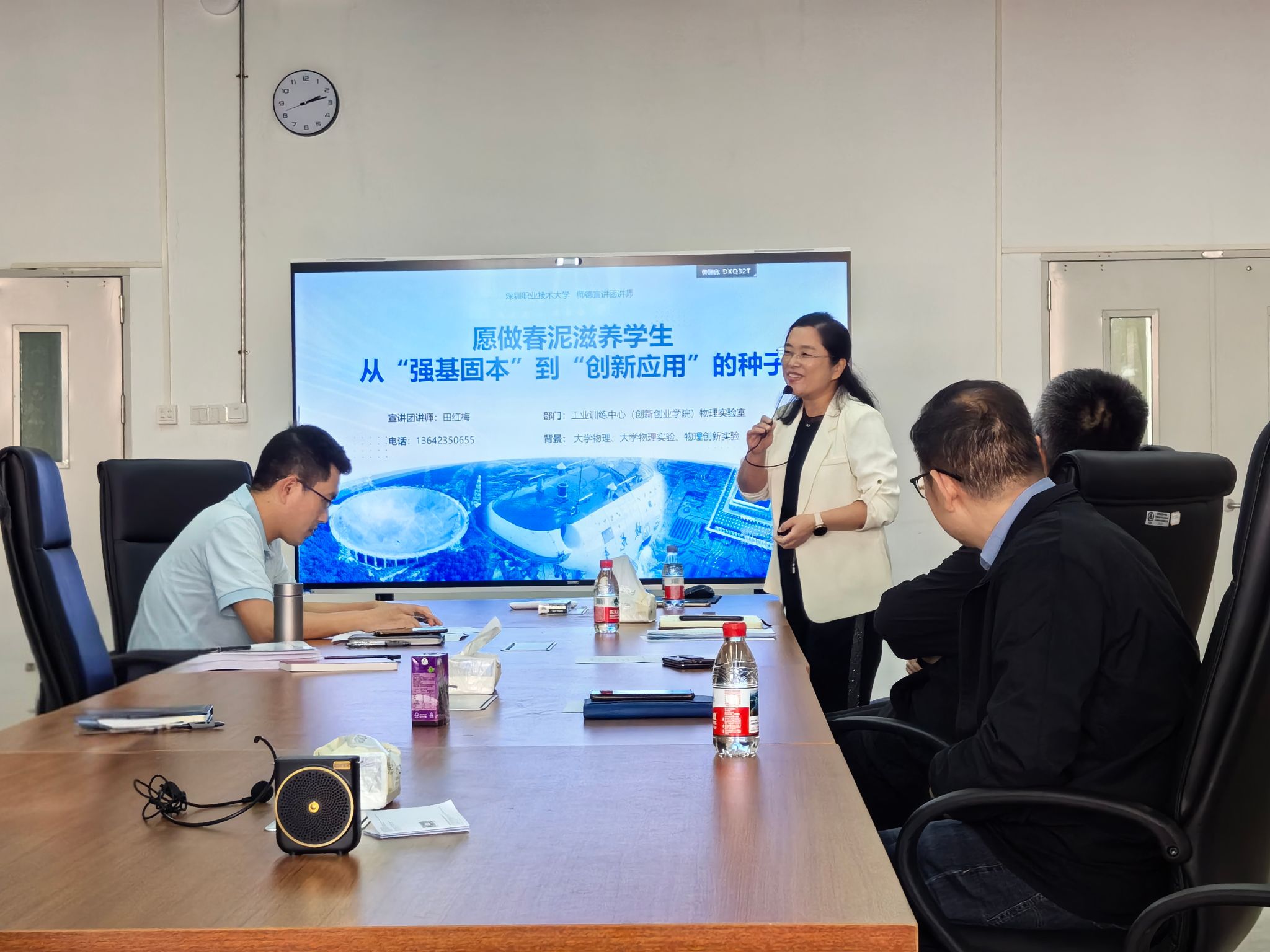 本次讲座主题为“愿做春泥滋养学生—从‘强基固本’到‘创新应用’的种子”,田红梅老师以大学物理背景、大学物理实验、物理创新实验为背景,强调教师要像春泥般默默奉献滋养学生,从教学整体设计、教学实施过程、学生学习效果、反思整改措施四个方面,用真实教学案例将师德师风建设融入课程体系,对课程建设的理论、实践、创新进行了详细讲解,为课程建设的创新发展提供了生动范例,也为学院教师提供了宝贵的经验借鉴。